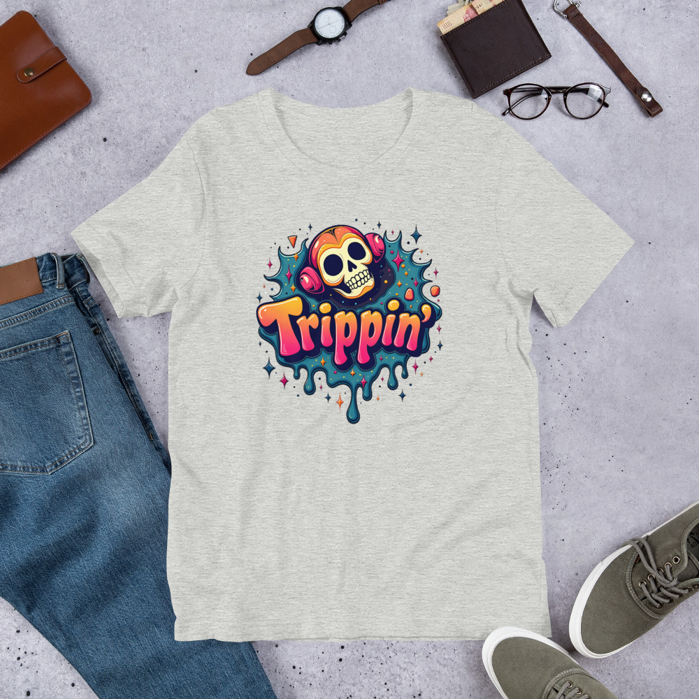 Trippin’ – Huminoid Skull with Headphones – Colorful Background